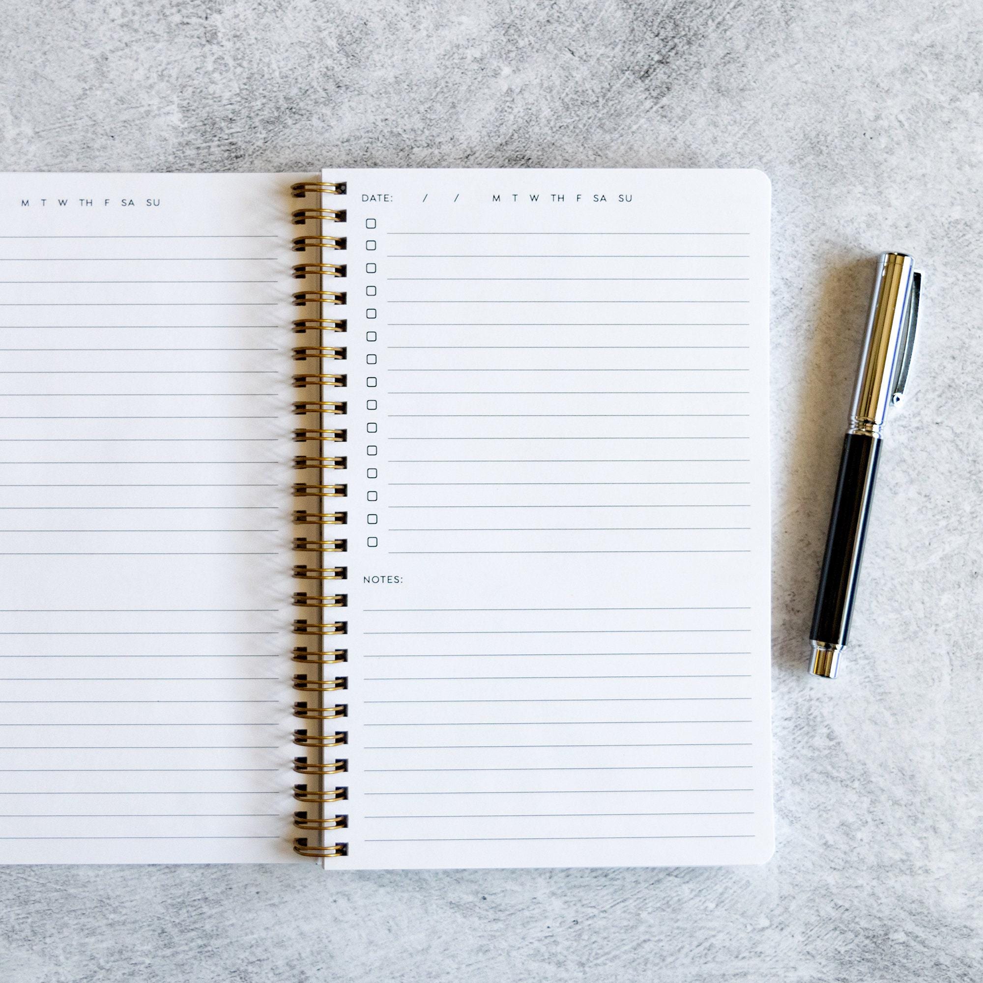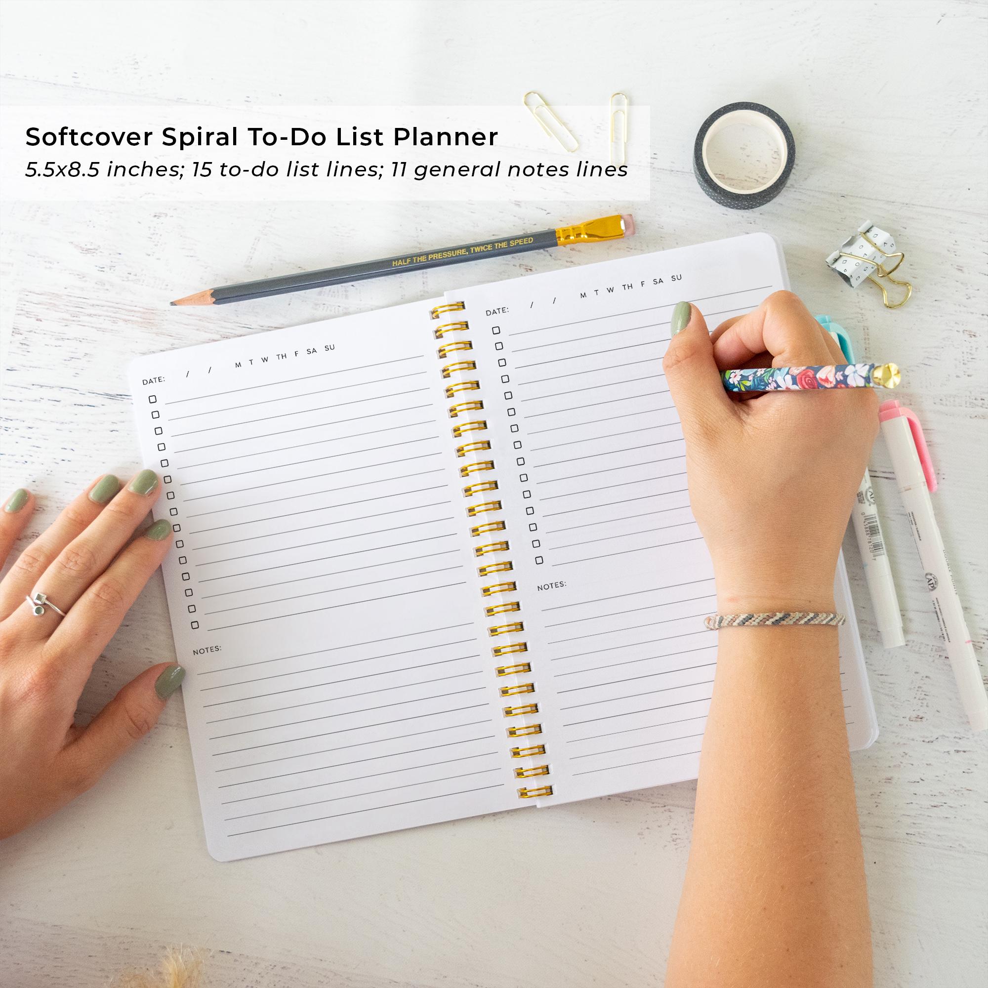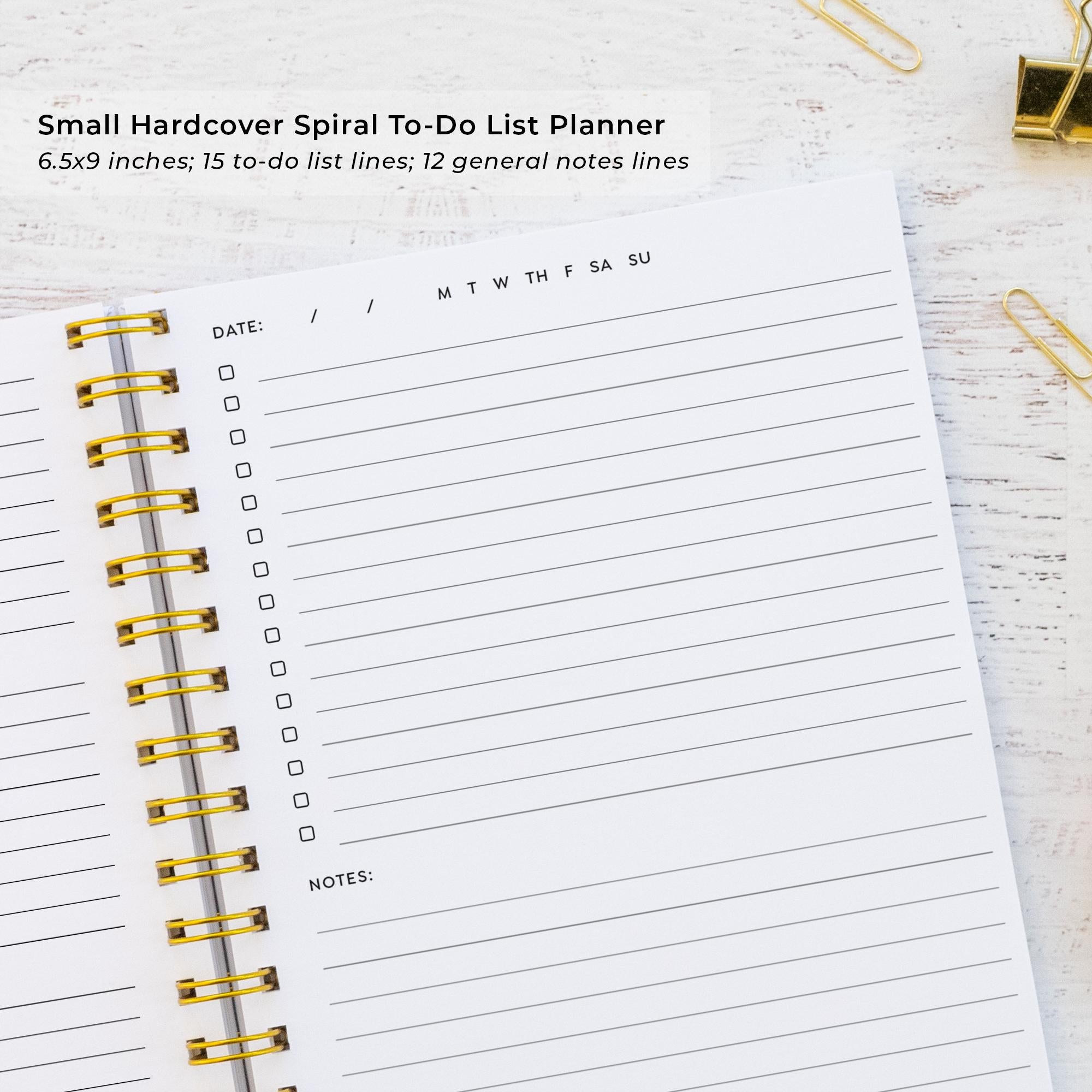 This simple, minimalist planner notebook is the perfect way to stay on task, with 3 months of daily to-do list pages spiral-bound with a gorgeous custom-printed cover. With three convenient sizes, it's great on your desk or on the go. Includes luxe 70# interior sheets, a smooth matte card stock cover with a transparent frosted poly protective cover and a rustic gold wire spiral binding. Includes list items and additional notes on each page, plus helpful year overviews. Personalize the text on the front cover. Makes a fun and practical personalized gift!