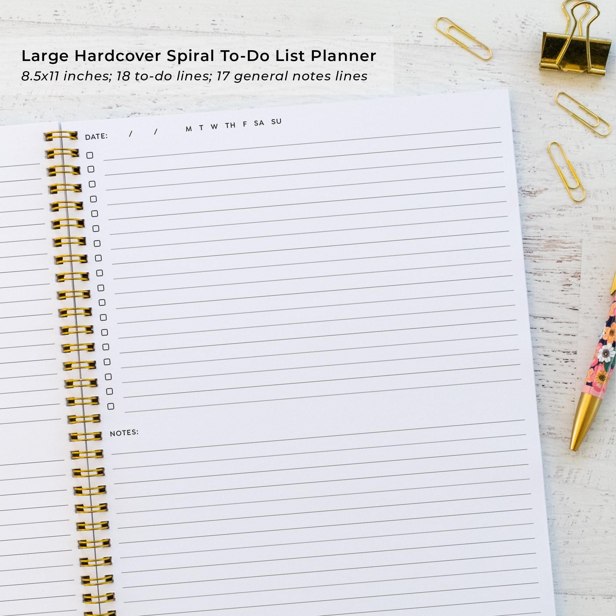 This simple, minimalist planner notebook is the perfect way to stay on task, with 3 months of daily to-do list pages spiral-bound with a gorgeous custom-printed cover. With three convenient sizes, it's great on your desk or on the go. Includes luxe 70# interior sheets, a smooth matte card stock cover with a transparent frosted poly protective cover and a rustic gold wire spiral binding. Includes list items and additional notes on each page, plus helpful year overviews. Personalize the text on the front cover. Makes a fun and practical personalized gift!